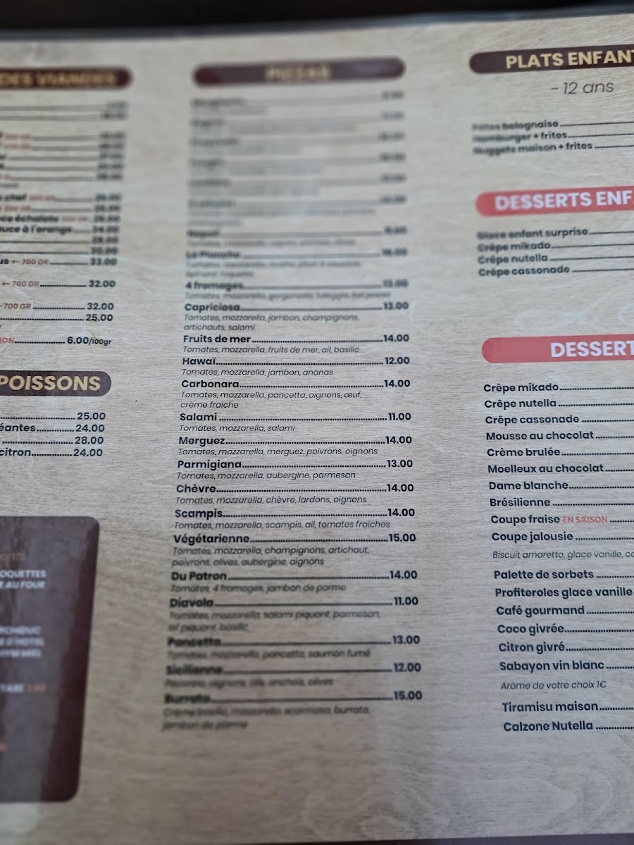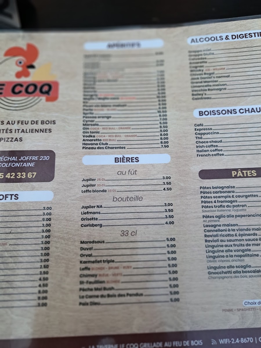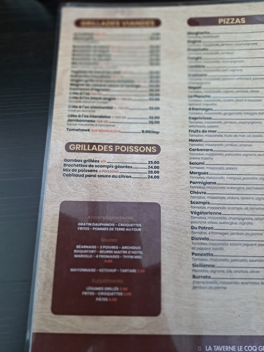 Overall, Napul'é - Grillades Au Feu De Bois delivers a satisfying and well-rounded menu that highlights the richness of wood-fired grilling with a touch of indulgence. Signature offerings like the Côte À L Os Sauce Aux 3 Poivres showcase expertly cooked meat paired with bold, peppery flavors, while the Brochettes Au 4 Viande Boeuf Canard Dinde Porc provide a generous and diverse tasting experience for those who enjoy variety. Seafood lovers are equally catered to with the impressive Brochette de Scampis Géante, and lighter starters such as the Carpaccio de Bœuf add a refined balance to the meal. Classic favorites like the Brochette de Boeuf remain reliable staples, and the drink selection, including the refreshing Picon Vin Blanc and the comforting Irish Coffee, rounds out the experience nicely. Altogether, the menu reflects a thoughtful blend of hearty grill specialties and complementary dishes, making it a strong choice for those seeking both quality and flavor in a relaxed setting.